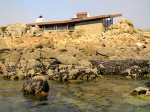 Felsen und beruhigt beobachten wir das Meer mit spritziger Gischt und Nebel
