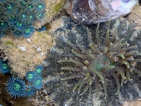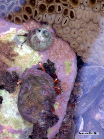 bei näherem Hinsehen entdecken wir alles bewegt sich: Seeanemonen Einsiedlerkrebse mit Schalen auf dem Rücken, kleine Fische, Seeigel und sogar ein Seestern, der sich drohend aufrichtet.