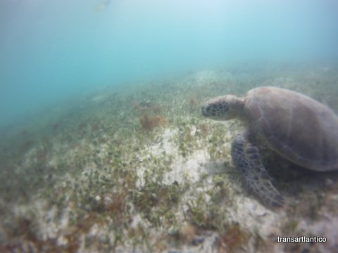 Sogleich sichten wir einen Rochen und einige große Schildkröten und viele bunte Fische, vor allem blaue und gelbe ( man erkennt sofort meine Kompetenz in Sachen Fauna ).