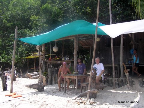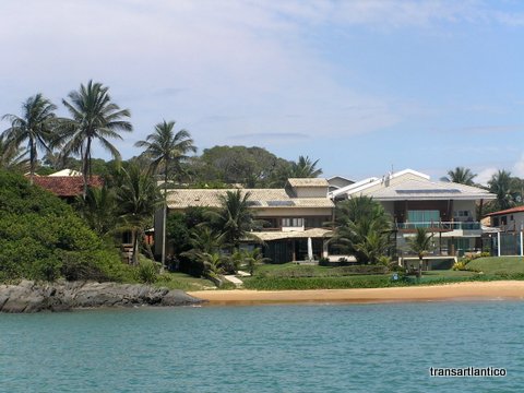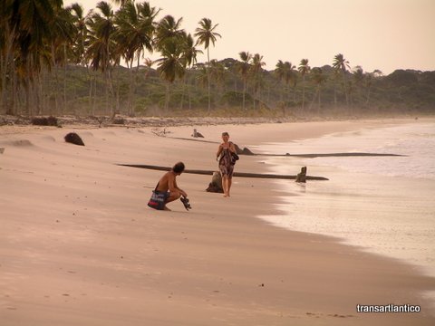 Am Mittwoch (14.03.) gehts endlich weiter. Früh um 6 Uhr aufstehen und um 7 Uhr den Anker aufholen. Es sind ca. 40 sm bis Morro de Sao Paulo (Morro ist ein Berg, und nicht zu verwechseln mit der Stadt Sao Paulo). Ein kleiner Tagestörn zum wiedereingewöhnen. Abends, kurz vor Dunkelheit, segeln wir in eine landschaftlich sehr schöne Flußmündung und ankern neben der SY Santana (NL) vor dem Fischerdorf Gamboa. Jan und Trees hatten uns mit ihrer 54 Fuß Yacht natürlich überholt. In den nächsten Tagen entdecken wir gemeinsam die sehr abwechslungsreiche Umgebung. Da ist der Ort Morro de Sao Paulo, sehr schön, sehr touristisch und ziemlich viele Leute. Zurück laufen wir an einem wunderschönen Strand mit einem rosa Felsen, dessen Sandschlamm gut für die Haut sein soll und alle Frauen beschmieren sich von Kopf bis Fuß damit, um schön zu sein!